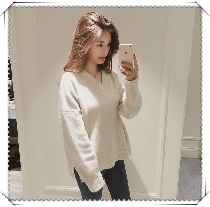 纯色V领款式的针织毛衣,即使已经有了,也还是想再入一件有木有~简单的版型更好搭配,也不挑人穿,V领领形很好的将自身的柔美感体现出来~宽松直筒的版型比起修身款包容性更好,胖妹也别担心啦~都可以hold住哦~也可以自己扎个皮带展露纤细腰身,同时也会更显高哦~