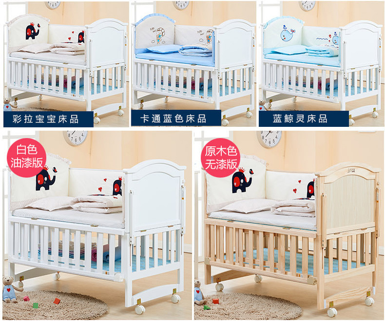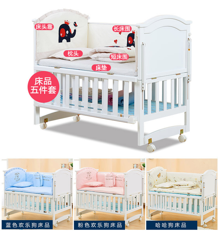 颜色: 白色床,白色+蓝色卡通床品,白色+哈哈狗床品,白色+彩拉宝宝床品,白色+粉色欢乐狗床品,白色+蓝鲸灵床品,白色+蓝色欢乐狗床品