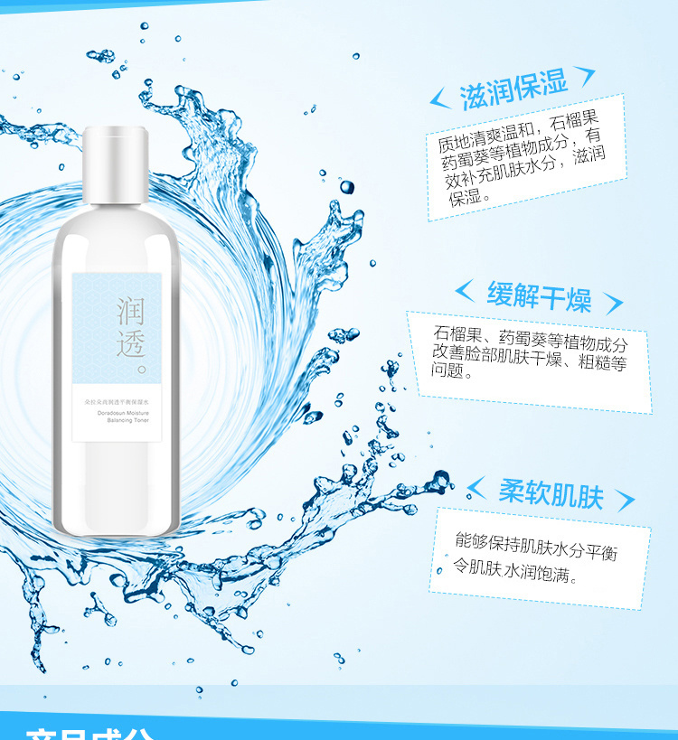 送化妆棉1盒(50片)!!保湿补水,朵拉朵尚润透平衡保湿水,蕴含高能量保湿因子,补水锁水,轻轻一抹,随时随地保持水漾光滑肌。一瓶可随身携带的移动水库,让肌肤喝足水,做个水美人!